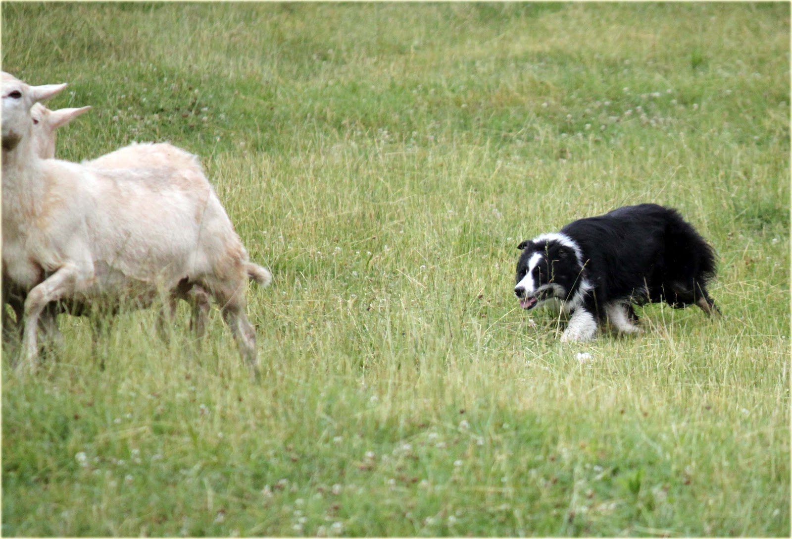 He did have a great outrun and lift but the sheep broke back to the set out. John got them back and started around the course but took a wrong flank and got himself in a tight spot so they retired. I'm sure Annette will have him back to his polished ways very soon as they get to know how each other works.